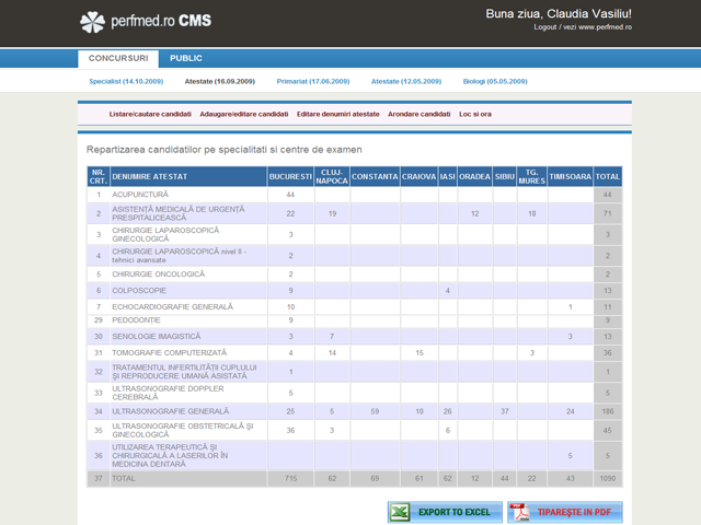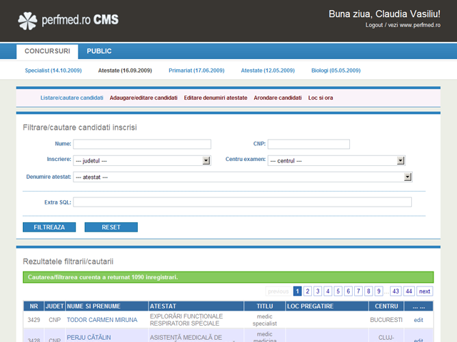 Multi user environment with modules generally designed to collect, validate and process data related to all phases of certification process: registration, validation and examination. Features: secure login, search forms, pagination, export to pdf/excel.