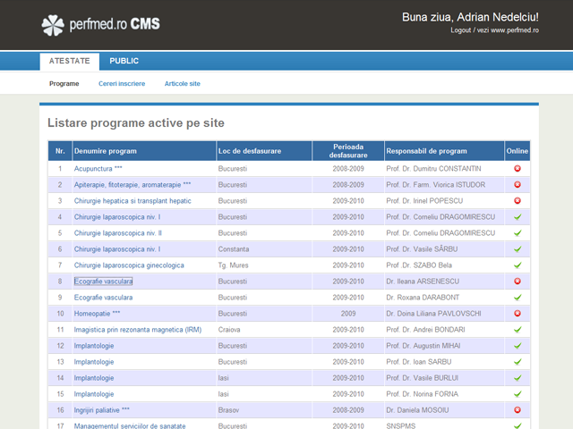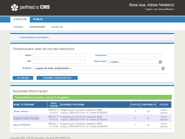 Web applications platform developed for courses & exams organized through CNPDS Bucharest. Tehnologies: PHP, MySQL, HTML, CSS, javascript, MS Access.