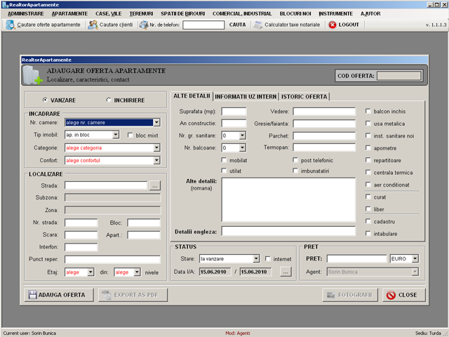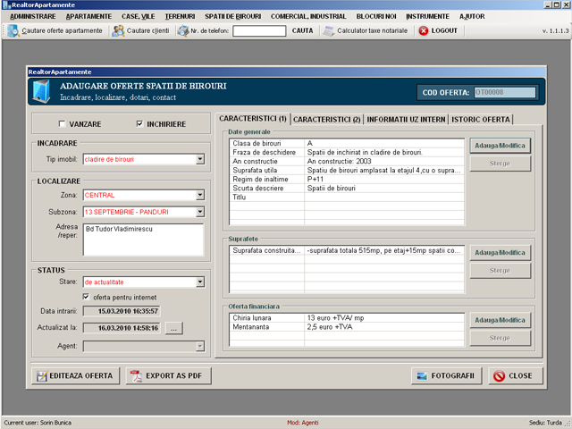 Real estate networked application with easy search and fast data entry forms used to manage offers & clients for apartments, offices, commercial & industrial spaces, new apartment buildings.